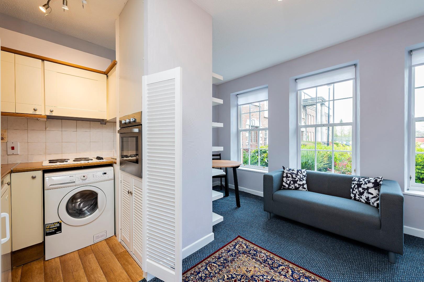 25 Gandon Close is a bright and spacious, ground floor studio apartment, located in this ever poplar gated development off Harold’s Cross Road. The accommodation extends to 34sq.m/365sq.ft. approximately. It has been well maintained and has a new bathroom, the open plan accommodation comprises of a hall, bathroom, living /dining area to the front overlooking the communal gardens, kitchen, and the bedroom area. The location is superb; it is within easy access of Harold Cross Park, a host of amenities, recreational facilities and restaurants in Harold’s Cross, Rathgar, Rathmines and the City Centre. There is a range of bus services on the doorstep.