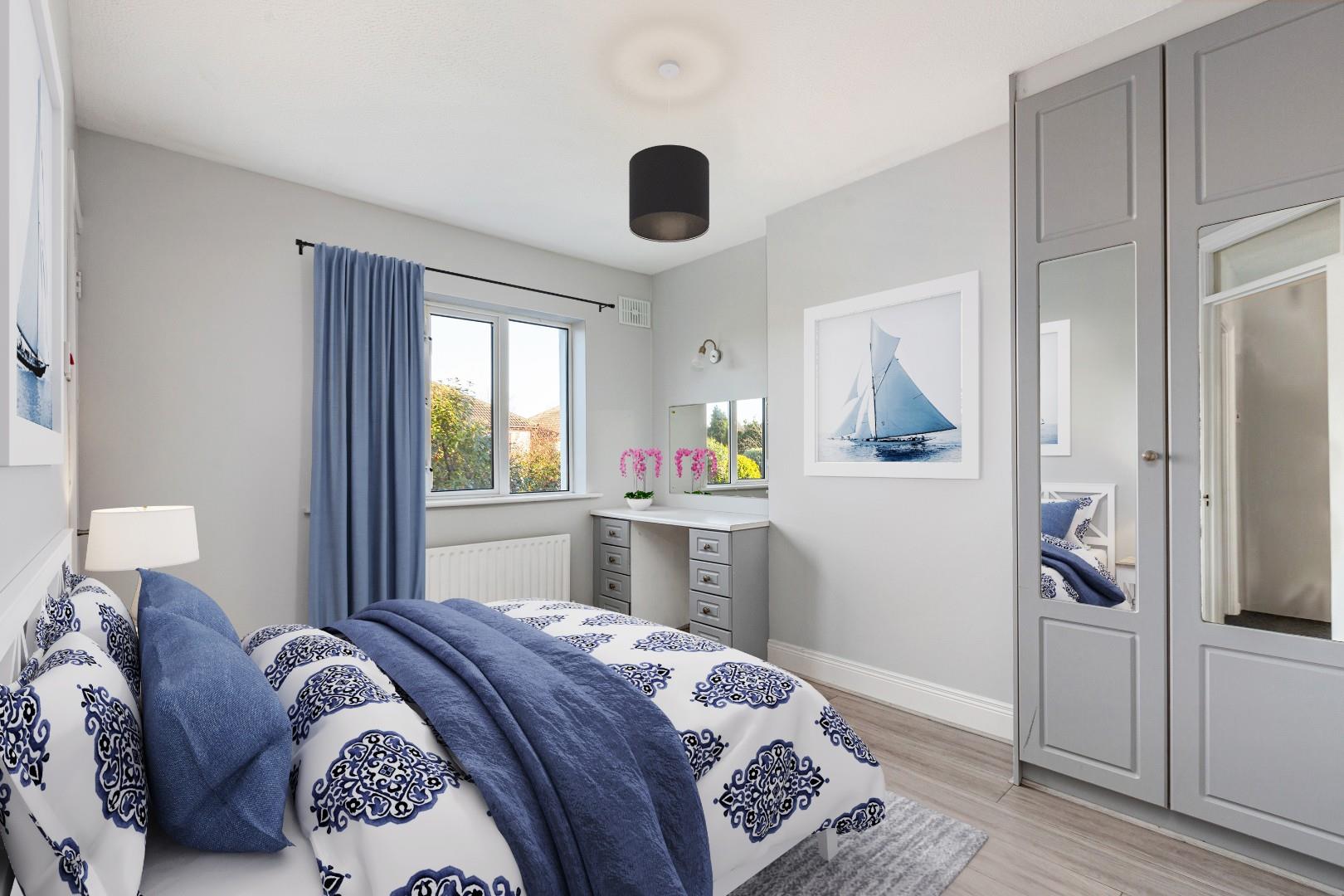 Double room with a box window overlooking the front courtyard. Built in wardrobes.
