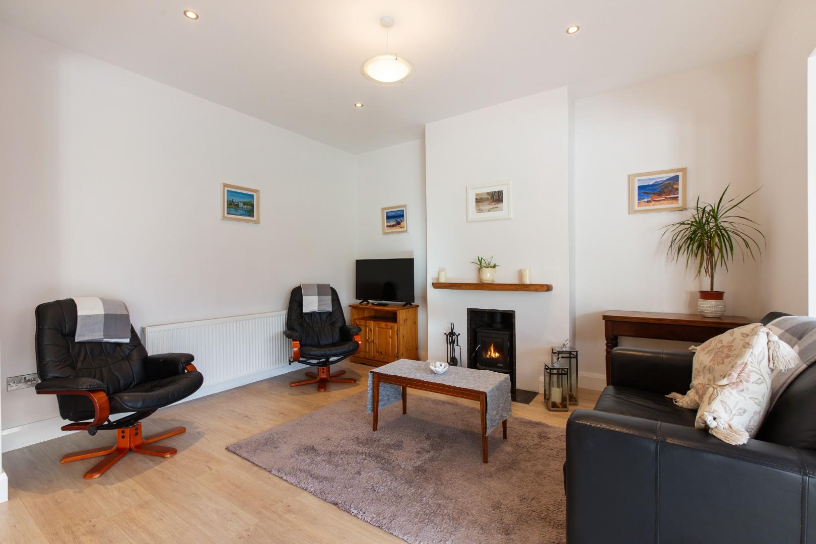 Fireplace with fitted stove.