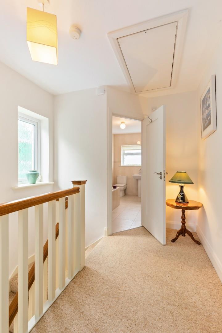 Bright landing with a pull down ladder to access the large attic space. which is insulated and is floored for storage. Linen cupboard.