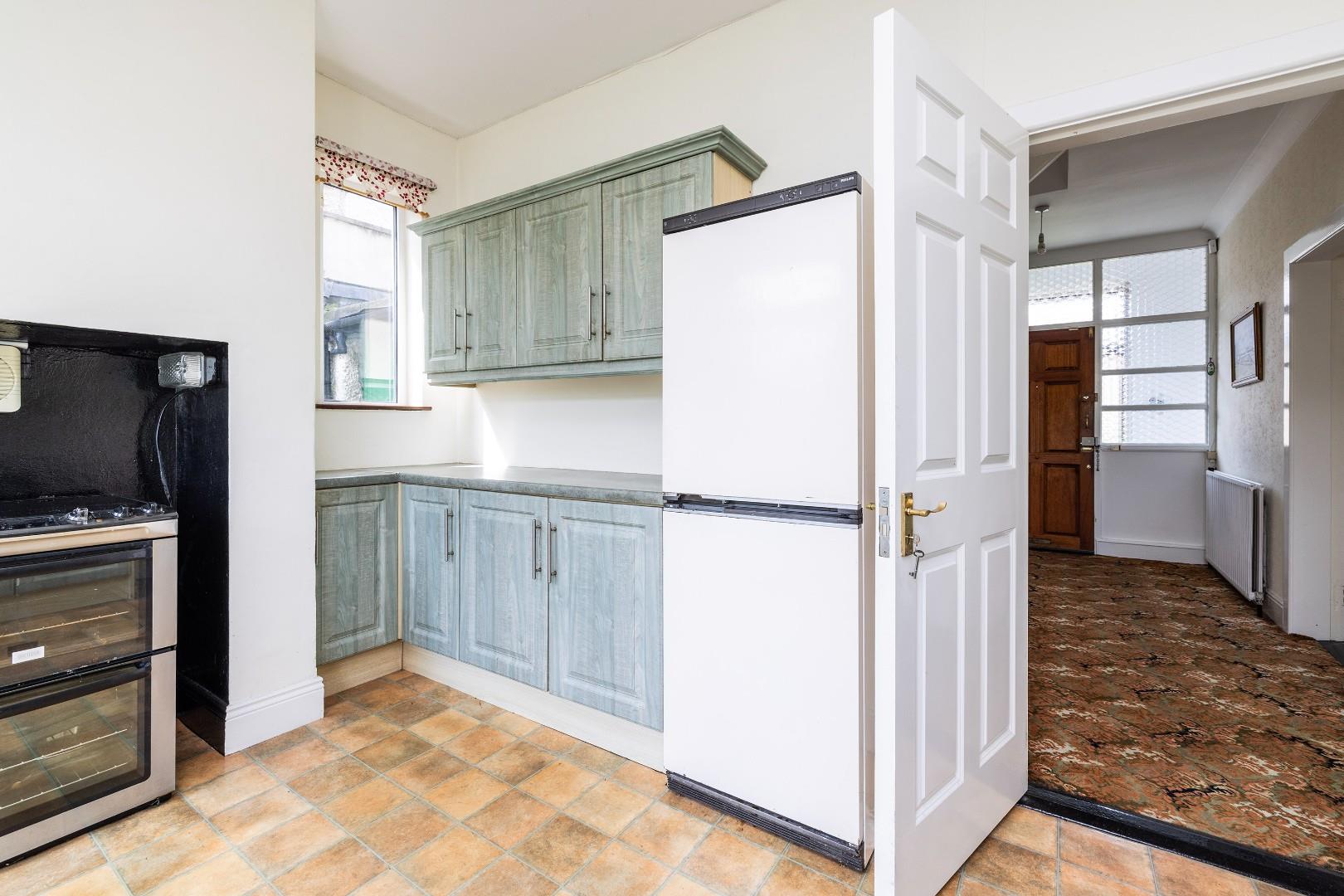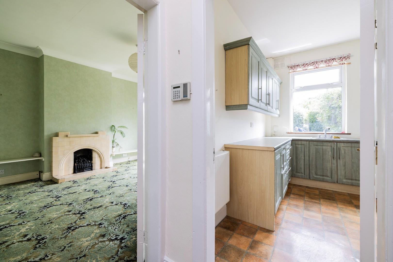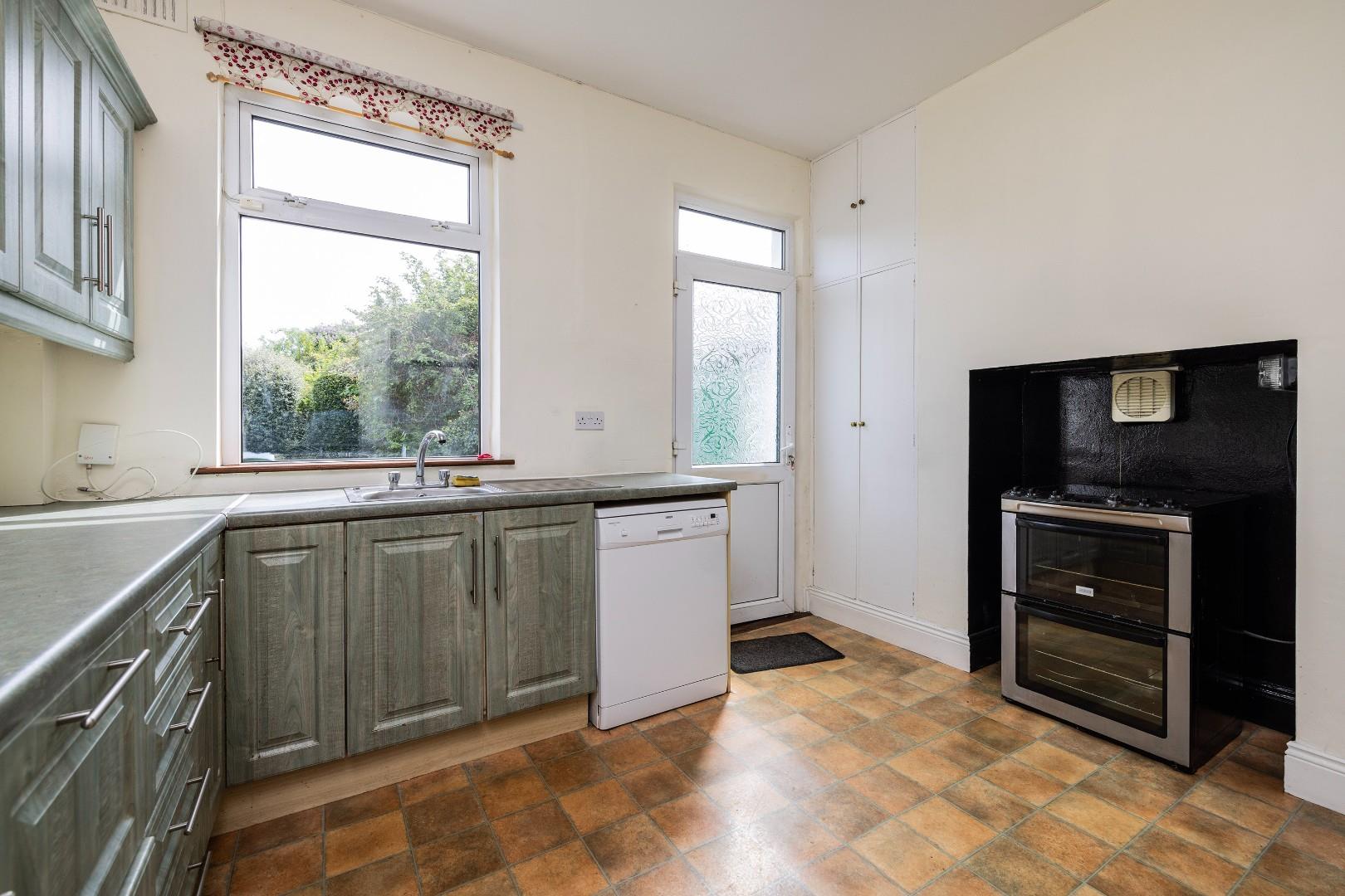 Fitted with an array of floor and wall mounted units with stainless steel sink, plumbed for a dishwasher, with space for a fridge / freezer and alcove for free standing cooker. Access to rear garden.