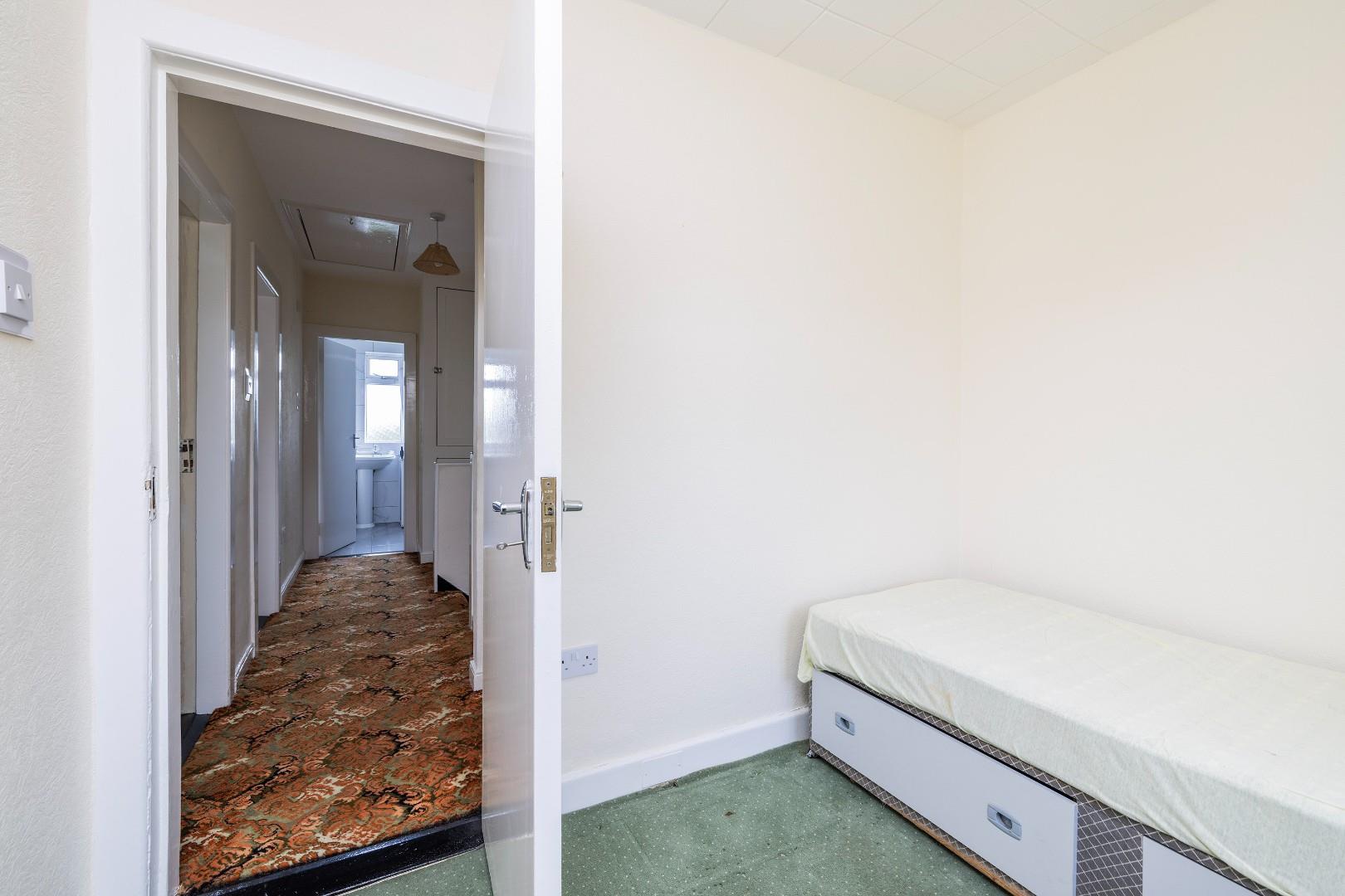 This is a generous double room to the rear, with exposed original timber flooring, built-in presses overlooking the rear garden and a great skyline.