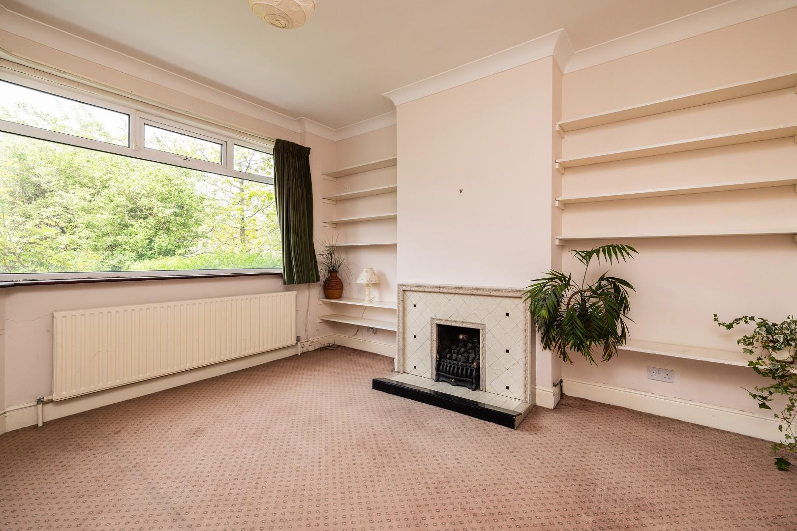 Bright and spacious with coved ceiling, horseshoe shaped period tiled fireplace (with coal effect gas fire) and sliding patio doors to sunny rear garden.