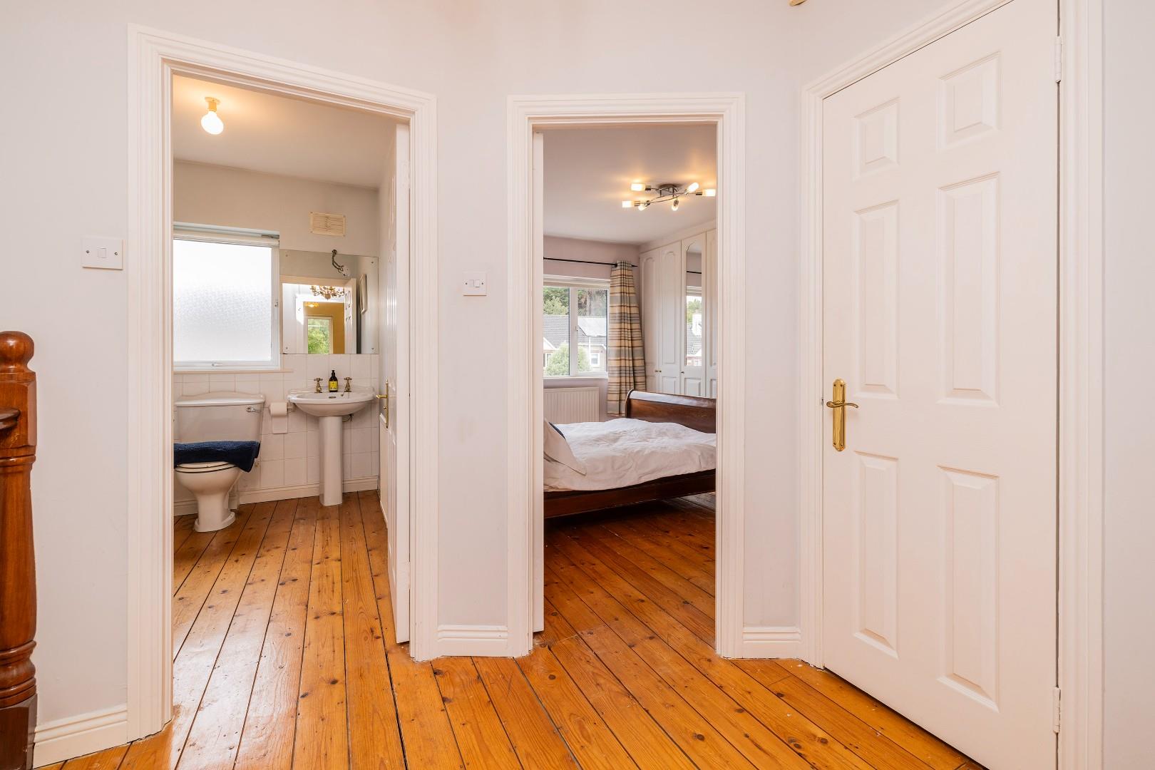 This is the principal bedroom to the front with exposed tongue and grooved flooring and built- in wardrobes, with access to