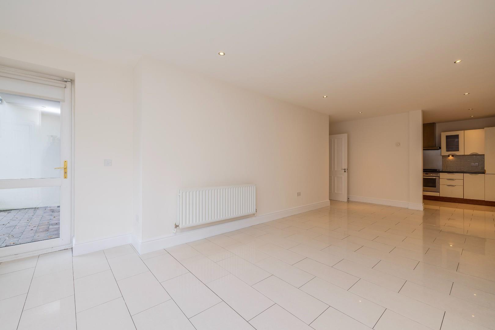 An extra spacious room, the perfect space for entertaining, with a large picture window to the front and door opening out to a sheltered patio area. A raised built-in enclosed gas fire provides a focal point for this comfortable room. There is continuous neutral coloured floor tiling, recessed down lighters and access to