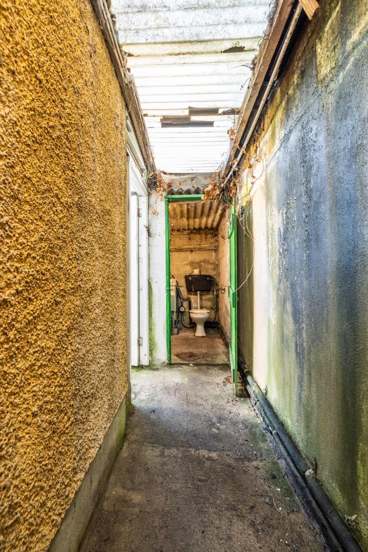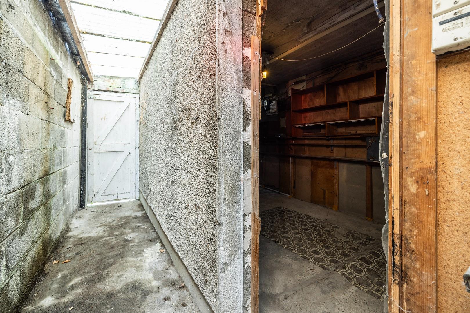 With up and over garage door and accessible from covered side passway. Exciting potential to incorporate into the main house (subject to P. P.) An outside w.c./boiler room is also accessed from the covered side passway.