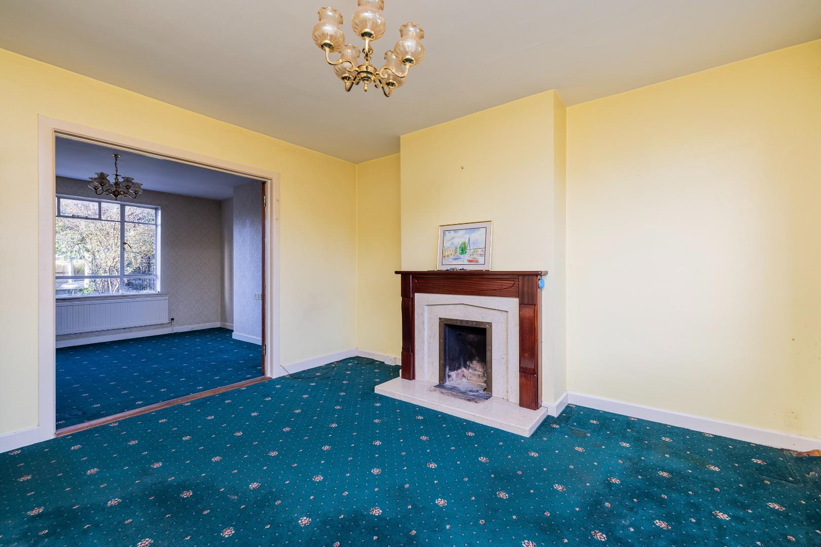 Bright and airy overlooking the rear garden, with a timber surround marble inset fireplace providing a focal point for this well-proportioned room.