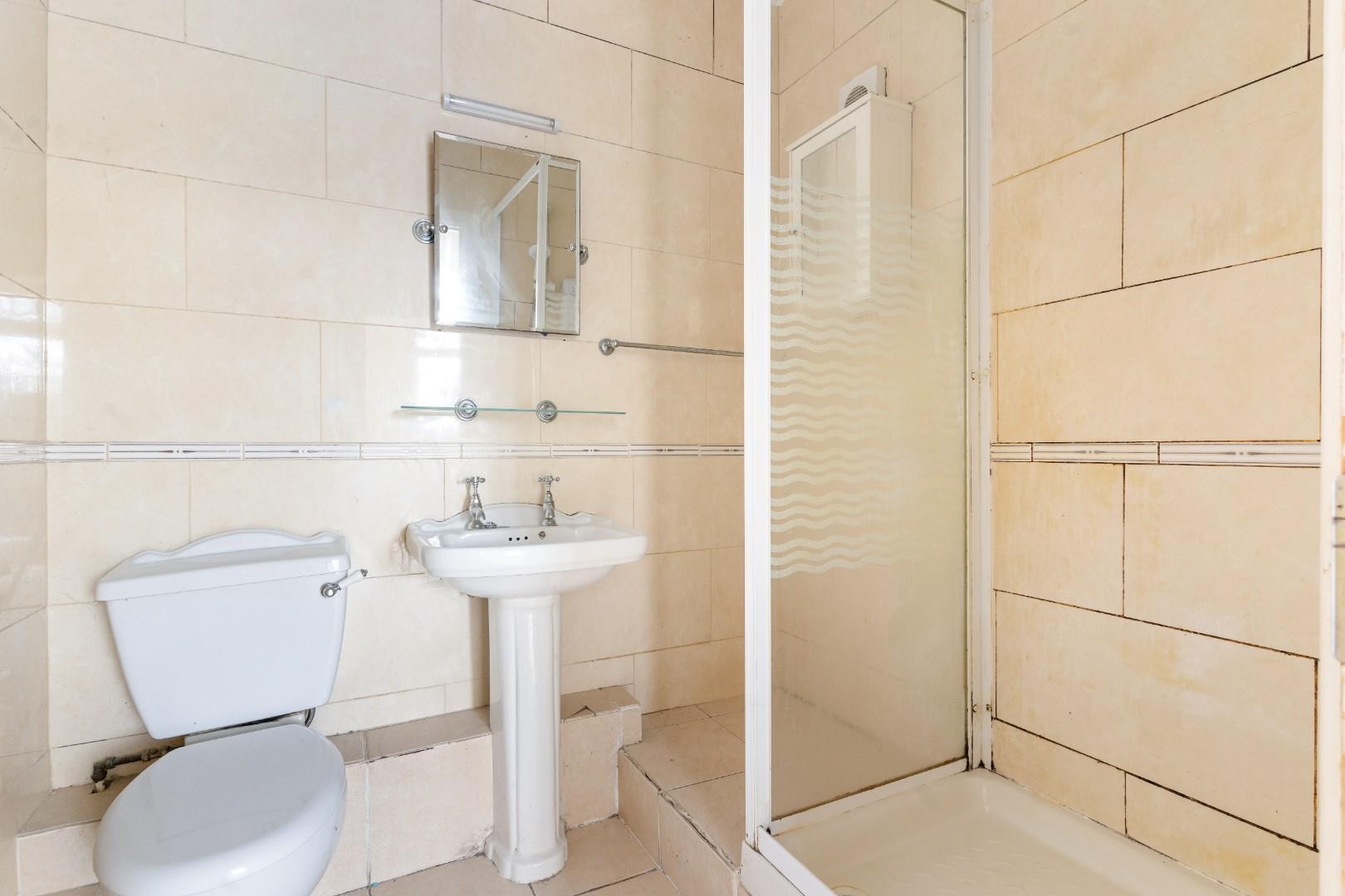 With W.C., wash hand basin and a step in shower cubicle.